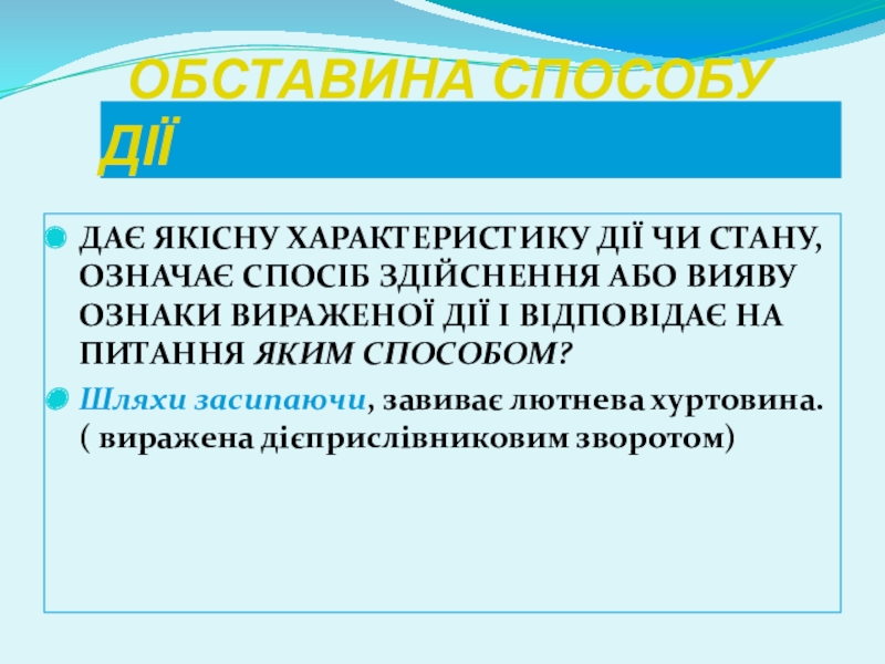 Слайд 17 ОБСТАВИНА СПОСОБУ ДІЇ