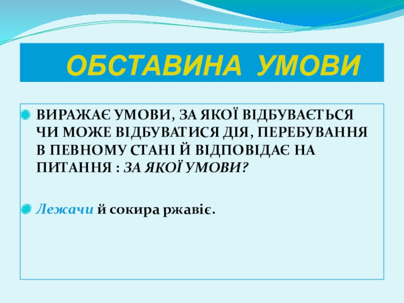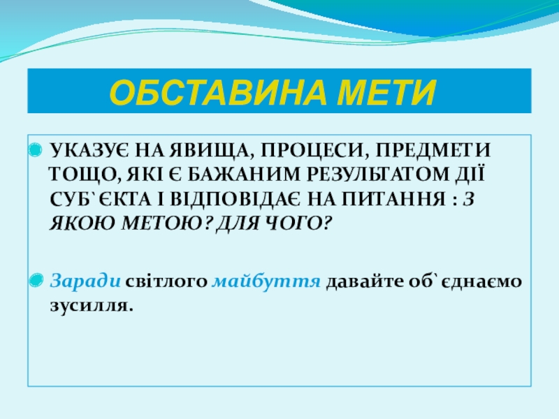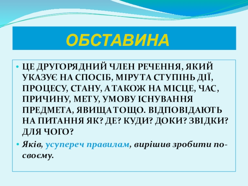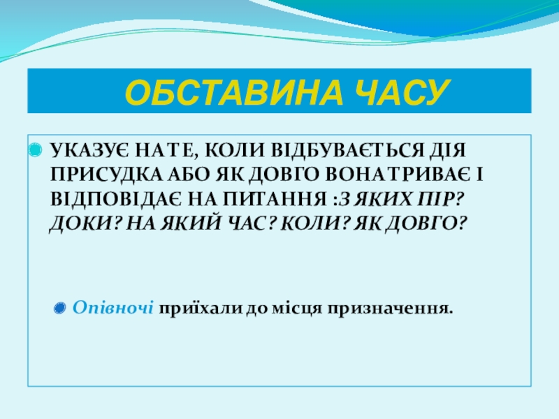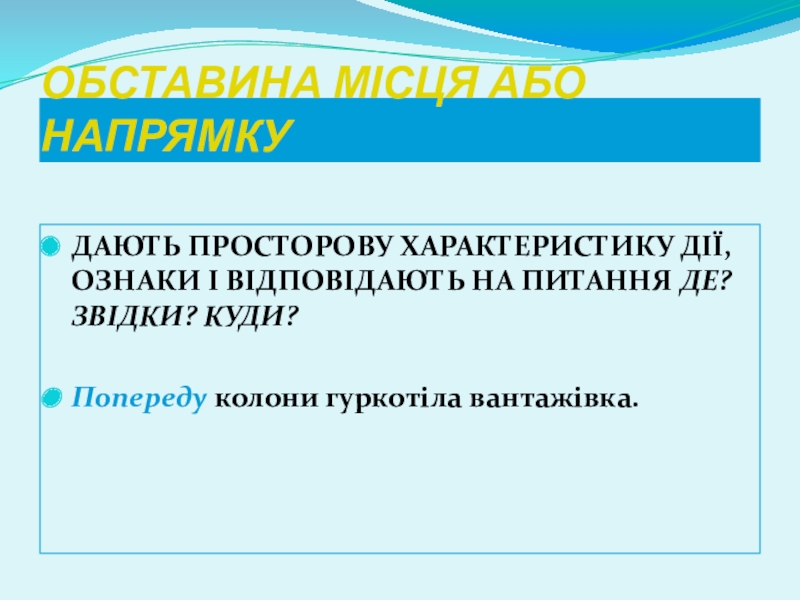 Слайд 19ОБСТАВИНА МІСЦЯ АБО НАПРЯМКУ
