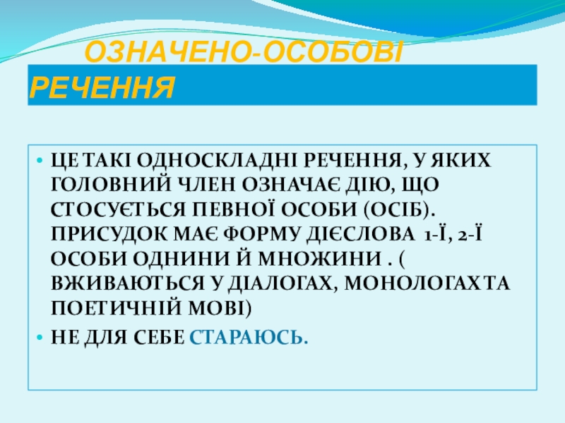Слайд 28 ОЗНАЧЕНО-ОСОБОВІ РЕЧЕННЯ