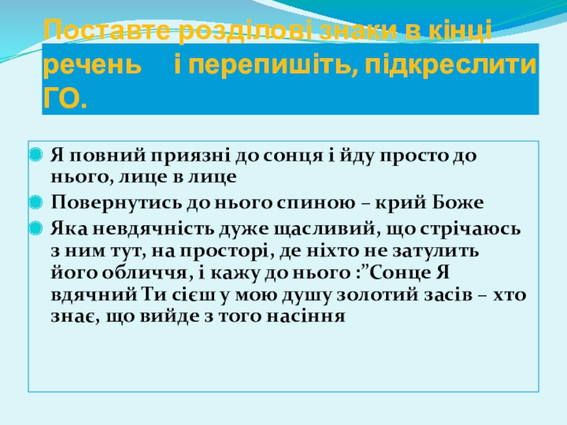 Слайд 41Поставте розділові знаки в кінці речень і перепишіть, підкреслити