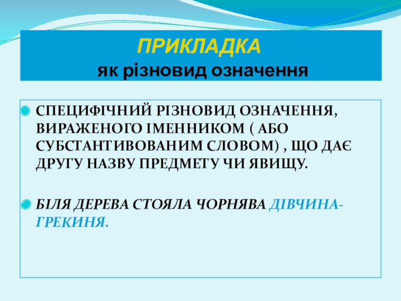 ОКРЕМО ВИРІЗНЯЮТЬ ПРИКЛАДКУ ЯК РІЗНОВИД ОЗНАЧЕННЯ.