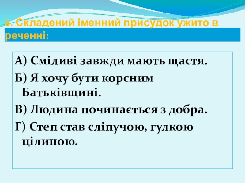 Слайд 496. Складений іменний присудок ужито в реченні: