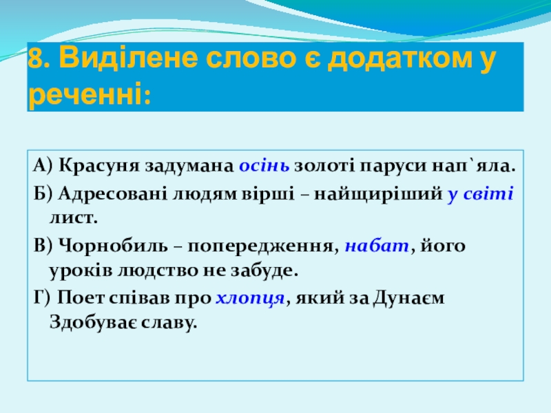 РЕЧЕННЯ, ЩО НАЗИВАЄ ПРЕДМЕТ І , ВІДПОВІДАЮЧИ НА ПИТАННЯ НЕПРЯМИХ ВІДМІНКІВ, МОЖЕ ВИРАЖАТИ: