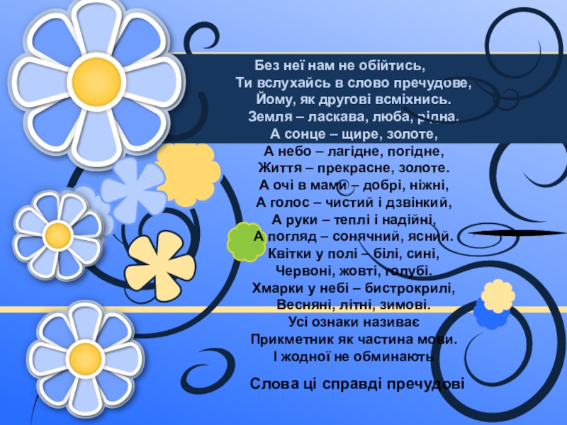 національний, святкова, прохолодна, новий, тепле, рідна, чарівна, цікава, іноземна.