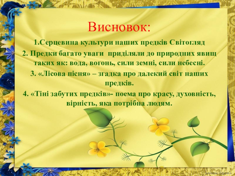 СВІТ ОЧИМА НАШИХ ПРЕДКІВ НА ОСНОВІ ВИВЧЕННЯ ТВОРІВ З УКРАЇНСЬКОЇ ЛІТЕРАТУРИ: М.КОЦЮБИНСЬКОГО ТА Л. УКРАЇНКИ