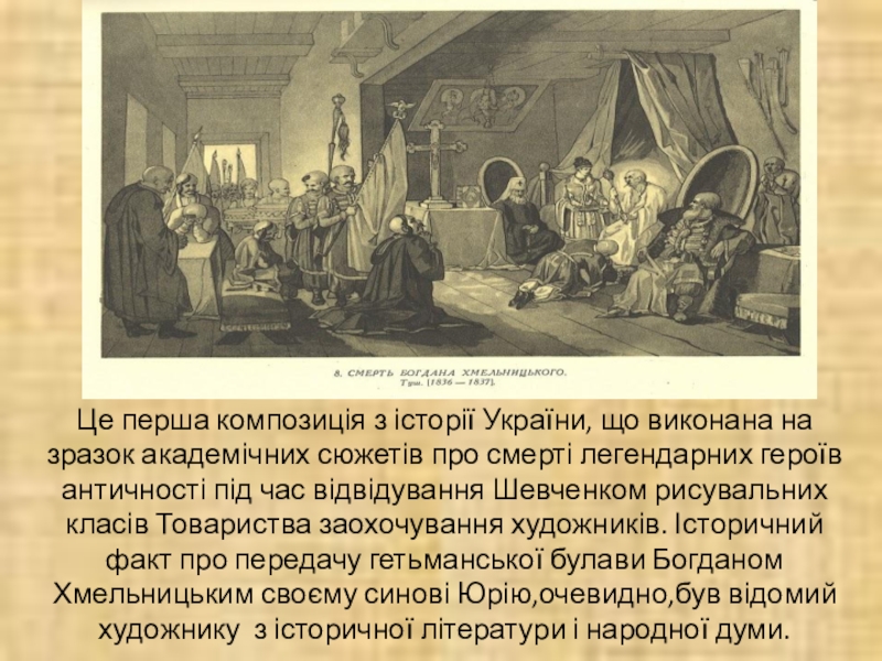 Шевченко мало ілюстрував свої поетичні твори. Цей малюнок може перегукуватися з таким текстом поезії: