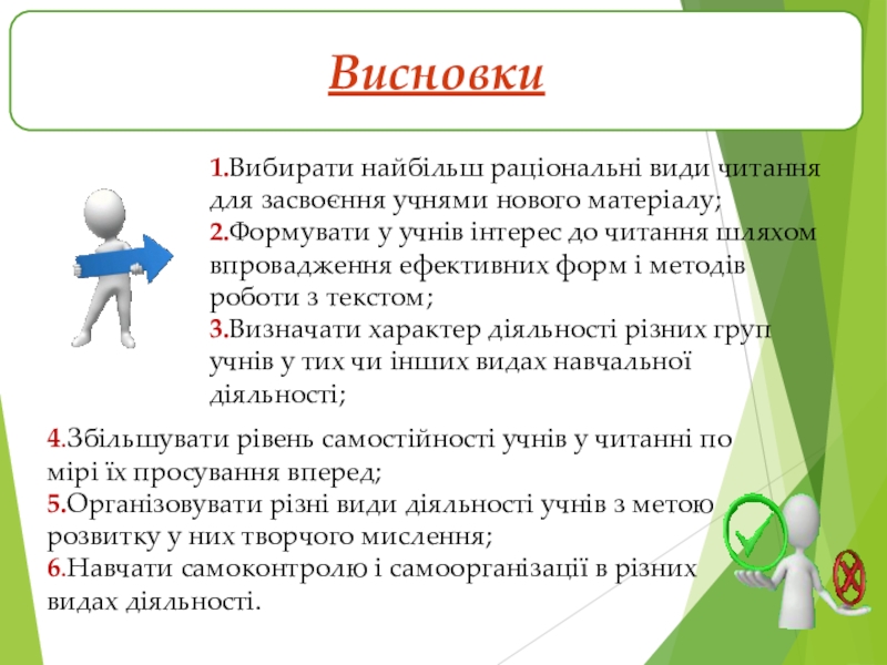 4.Збільшувати рівень самостійності учнів у читанні по мірі їх просування вперед;