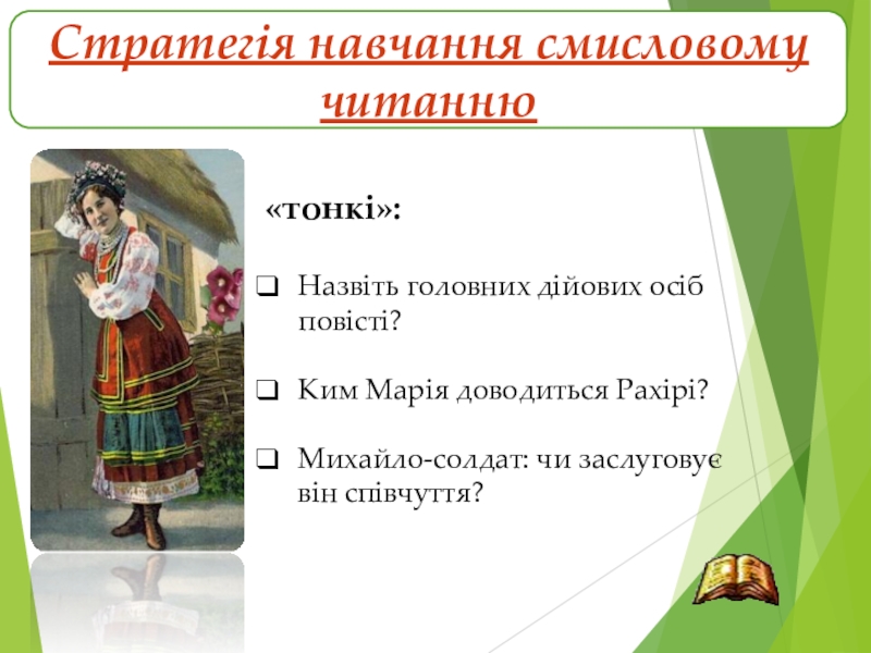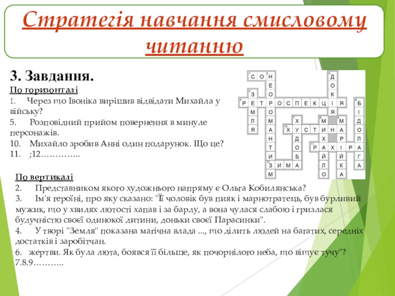 3. Ім'я героїні, про яку сказано: "Її чоловік був пияк і марнотратець, був бурливий мужик, що у хвилях лютості хапав і за барду, а вона чулася слабою і гризлася будучністю своєї одинокої дитини, доньки своєї Парасинки".