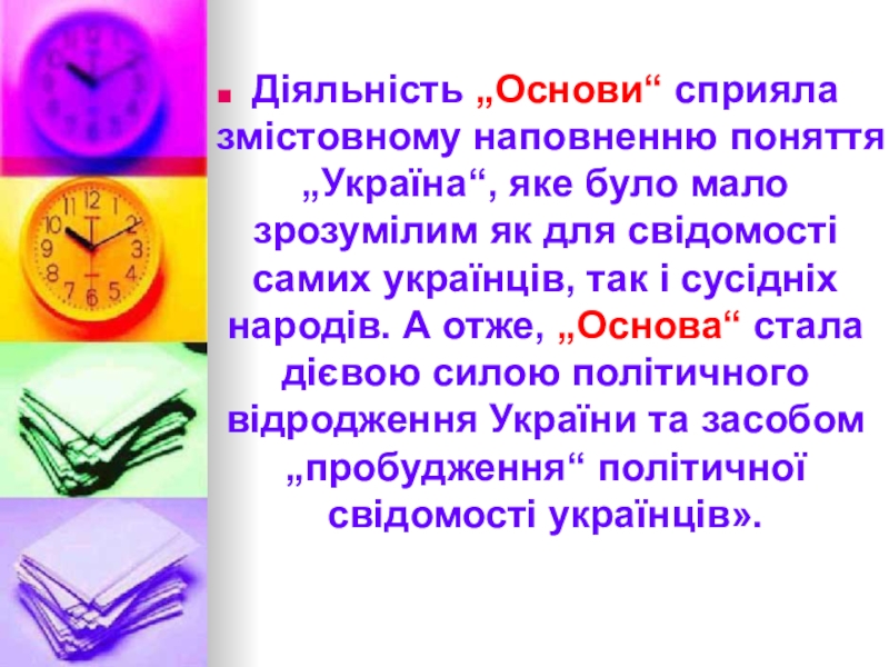 Слайд 25Діяльність „Основи“ сприяла змістовному наповненню поняття „Україна“, яке було мало зрозумілим