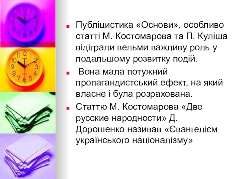Слайд 21Публіцистика «Основи», особливо статті М. Костомарова та П. Куліша відіграли вельми