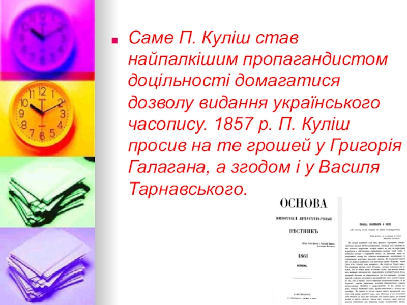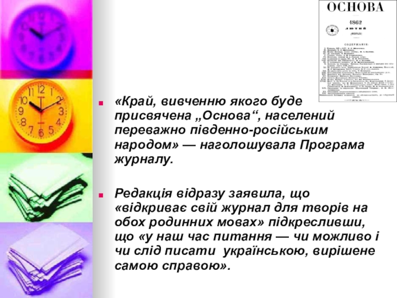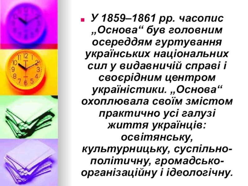 Слайд 24У 1859–1861 рр. часопис „Основа“ був головним осереддям гуртування українських національних сил
