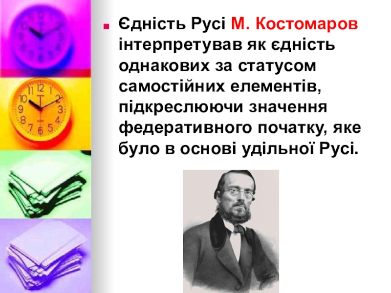Слайд 20Єдність Русі М. Костомаров інтерпретував як єдність однакових за статусом самостійних