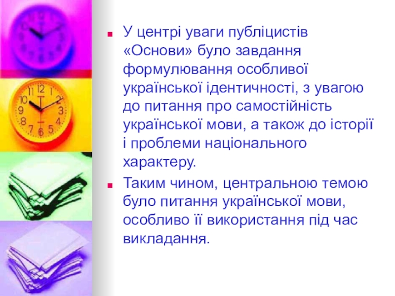 Слайд 11У центрі уваги публіцистів «Основи» було завдання формулювання особливої української ідентичності,