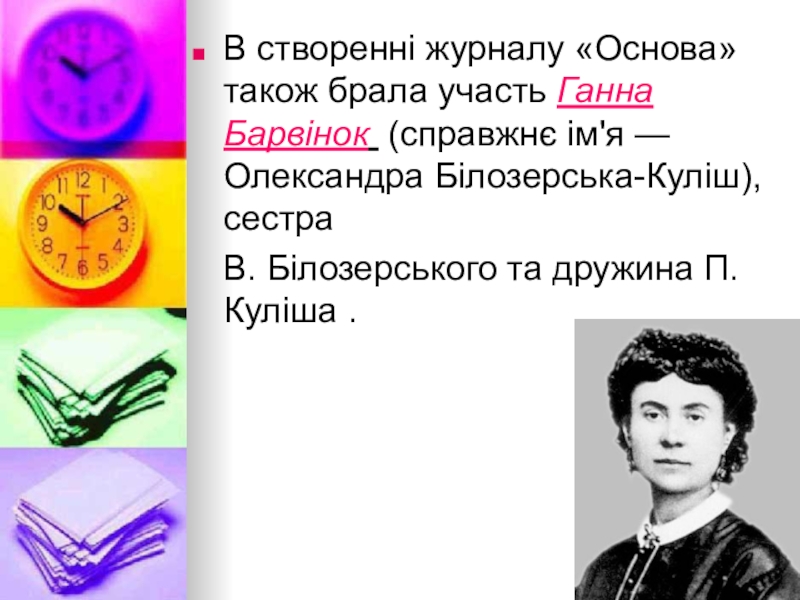Слайд 7В створенні журналу «Основа» також брала участь Ганна Барвінок (справжнє ім'я —