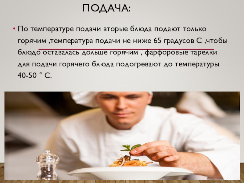 способы сервировки и варианты оформления и подачи простых блюд и гарниров, температуру подачи;