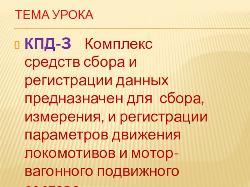 ТЕМА УРОКА КПД-3  Комплекс средств сбора и регистрации данных предназначен для сбора, измерения, и регистрации параметров