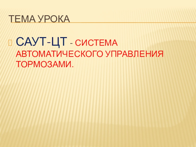 ТЕМА УРОКА САУТ-ЦТ - СИСТЕМА АВТОМАТИЧЕСКОГО УПРАВЛЕНИЯ ТОРМОЗАМИ.
