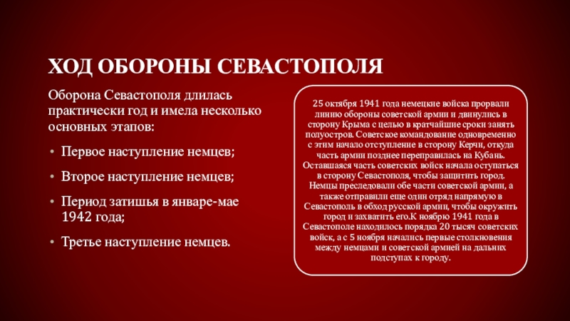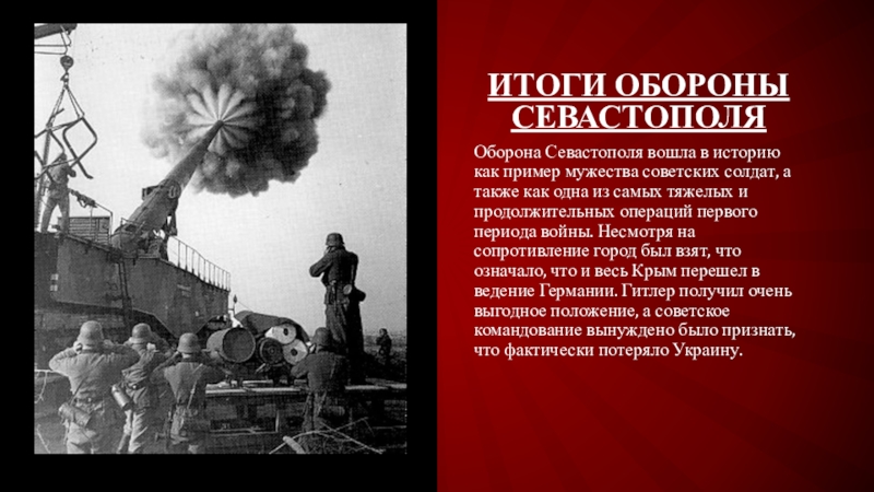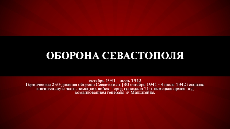1941 - 4 июля 1942) сковала значительную часть немецких войск. Город осаждала 11-я немецкая армия под командованием генерала Э. Манштейна.