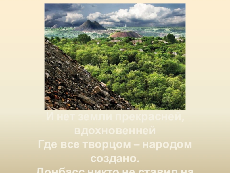 И нет земли прекрасней, вдохновенней Где все творцом – народом создано.Донбасс никто не ставил на колениИ никому