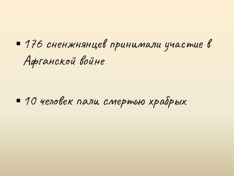 176 сненжнянцев принимали участие в Афганской войне 10 человек пали смертью храбрых
