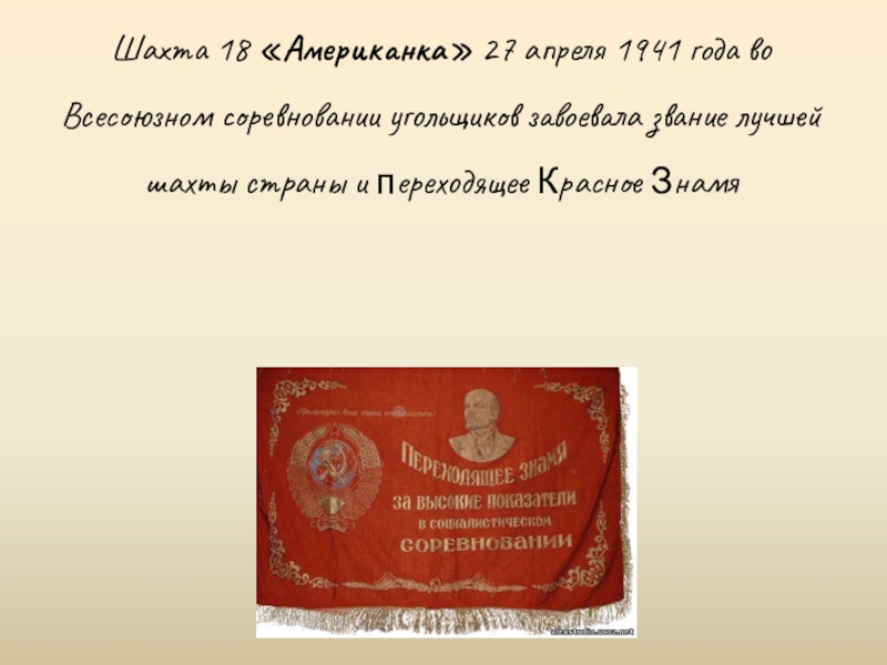 Слайд 11Шахта 18 «Американка» 27 апреля 1941 года во Всесоюзном соревновании угольщиков