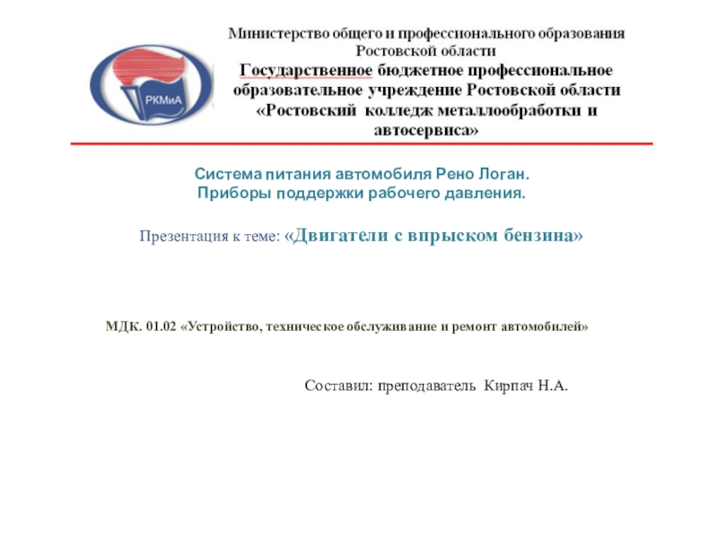 МДК. 01.02 «Устройство, техническое обслуживание и ремонт автомобилей»