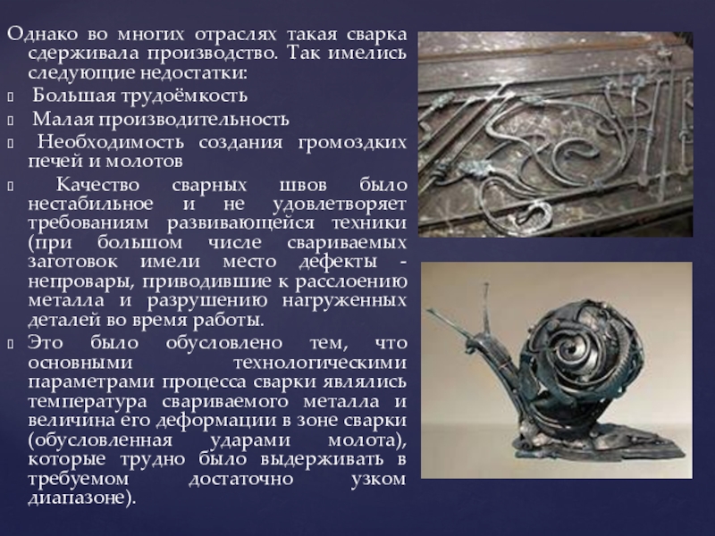 Слайд 6Однако во многих отраслях такая сварка сдерживала производство. Так имелись следующие