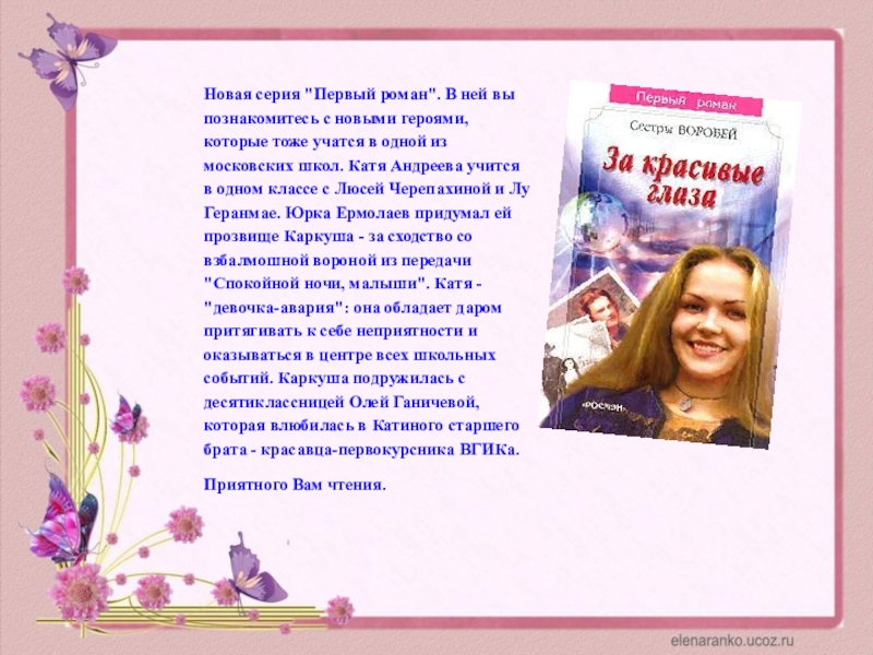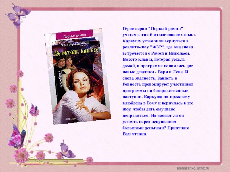 Слайд 9Новая серия "Первый роман". В ней вы познакомитесь с новыми героями,
