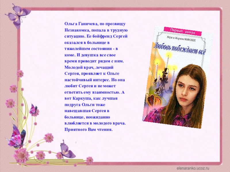 Слайд 11Ольга Ганичева, по прозвищу Незнакомка, попала в трудную ситуацию. Ее бойфренд