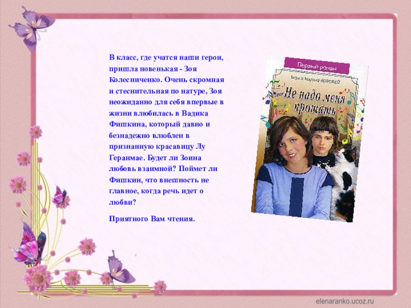 Слайд 18Зоя Колесниченко влюблена в Вадика Фишкина, который вроде бы отвечает ей