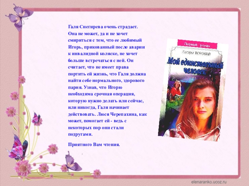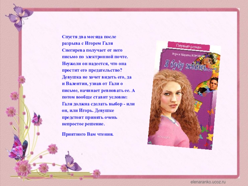Слайд 25Спустя два месяца после разрыва с Игорем Галя Снегирева получает от