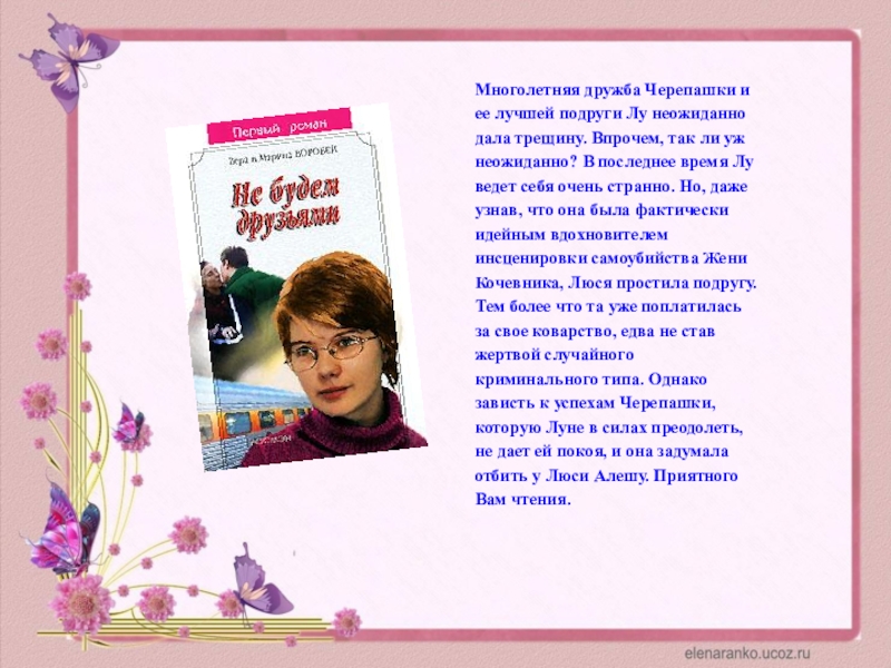 Слайд 14Многолетняя дружба Черепашки и ее лучшей подруги Лу неожиданно дала трещину.