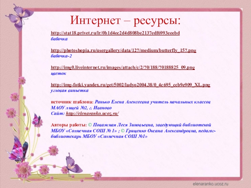 Авторы работы: © Поважная Леся Зиновьевна, заведующий библиотекой МБОУ «Солнечная СОШ № 1» ; © Гриценко Оксана Александровна, педагог-библиотекарь МБОУ «Солнечная СОШ №1»