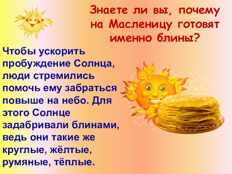Слайд 7Знаете ли вы, почему на Масленицу готовят именно блины?