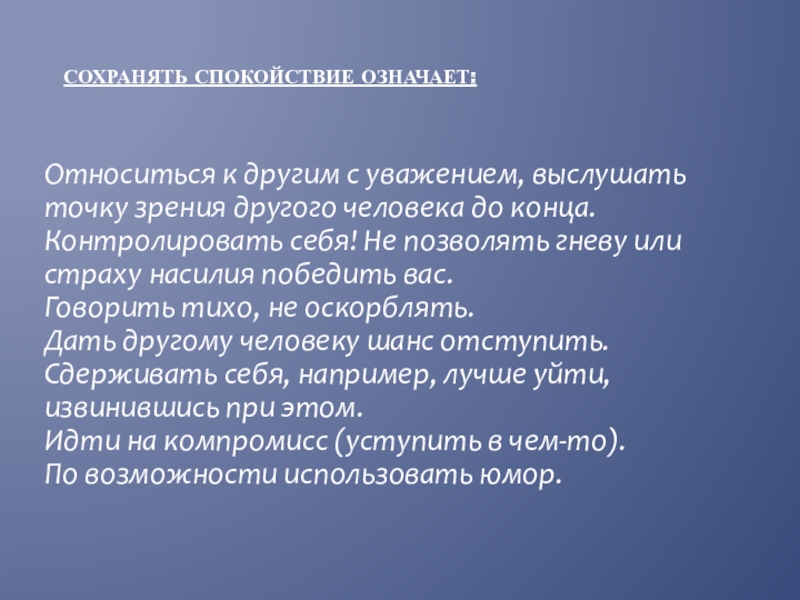 СОХРАНЯТЬ СПОКОЙСТВИЕ ОЗНАЧАЕТ: