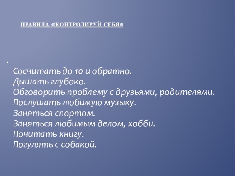 ПРАВИЛА «КОНТРОЛИРУЙ СЕБЯ»