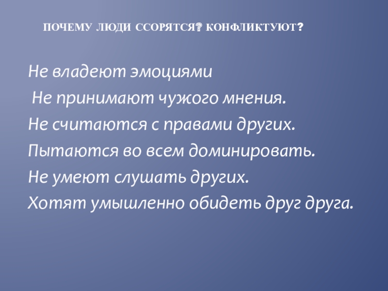 ПОЧЕМУ ЛЮДИ ССОРЯТСЯ? КОНФЛИКТУЮТ?