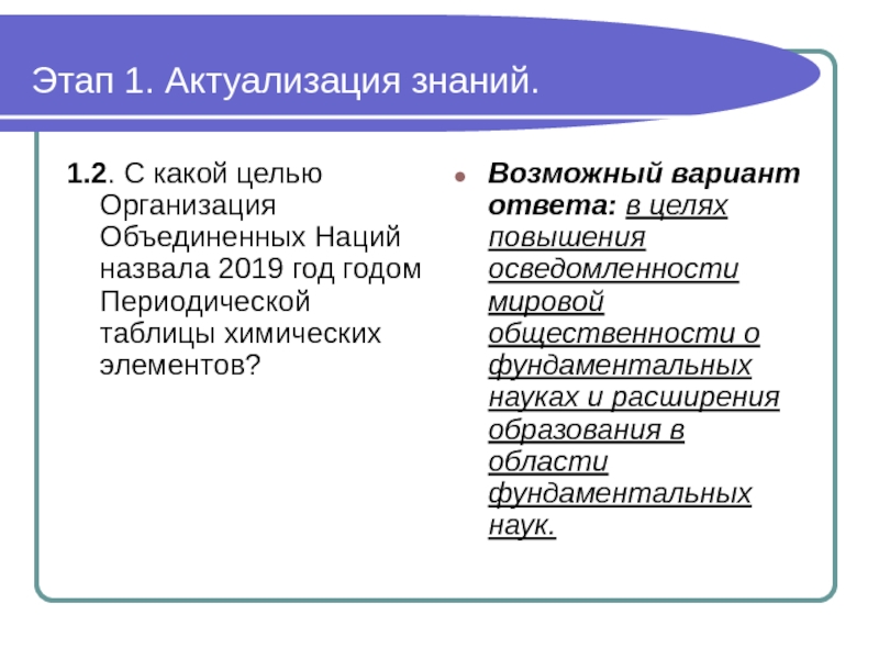 Слайд 1ООН провозгласила 2019 год годом периодической таблицы химических элементов