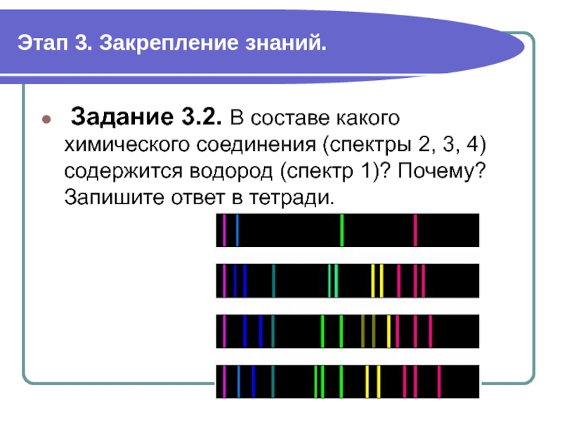 (спектры 2, 3, 4) содержится водород (спектр 1)? Почему? Запишите ответ в тетради.