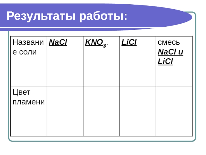 Цель: наблюдение реакции окрашивания пламени при помещении