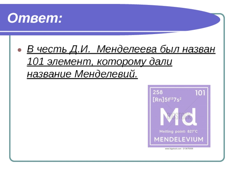 В честь Д.И. Менделеева был назван 101 элемент, которому дали