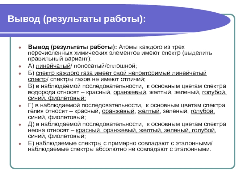 Вывод (результаты работы): Атомы каждого из трех перечисленных химических