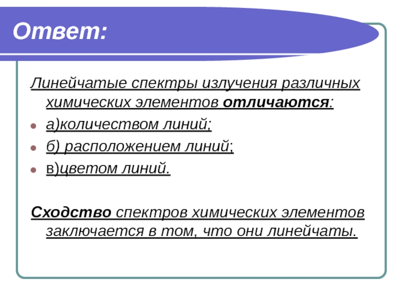 Линейчатые спектры излучения различных химических элементов отличаются: