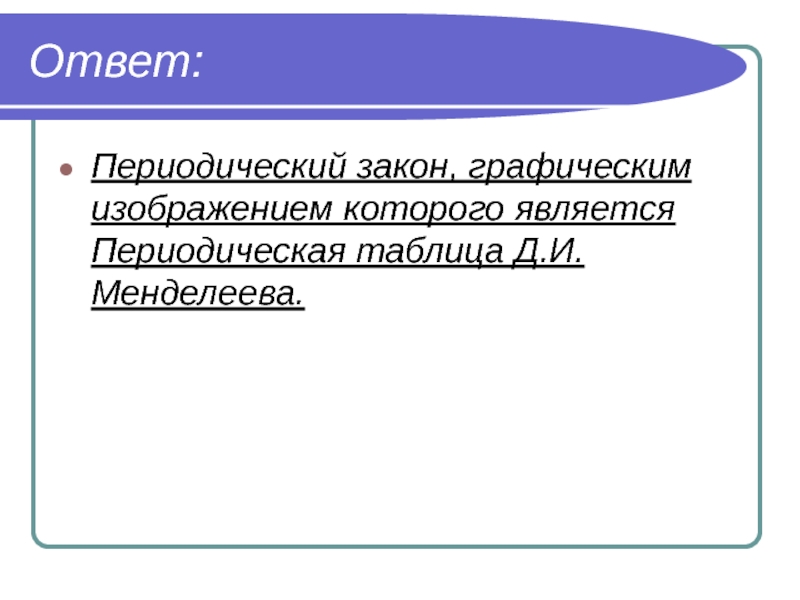 Периодический закон, графическим изображением которого является Периодическая таблица Д.И. Менделеева.