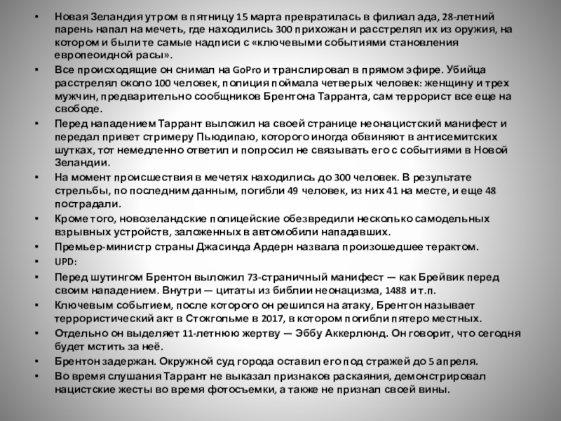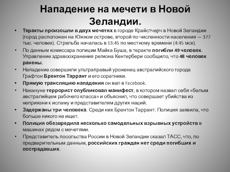 Слайд 14Нападение на мечети в Новой Зеландии.