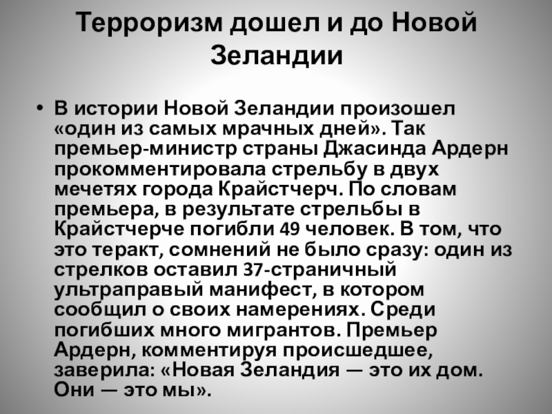 Слайд 13Терроризм дошел и до Новой Зеландии