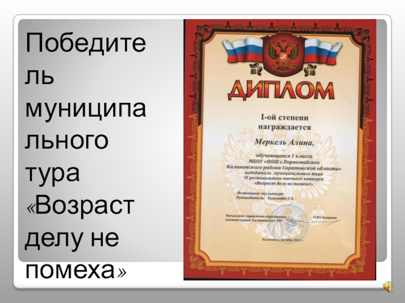 Слайд 3Победитель муниципального тура «Возраст делу не помеха»