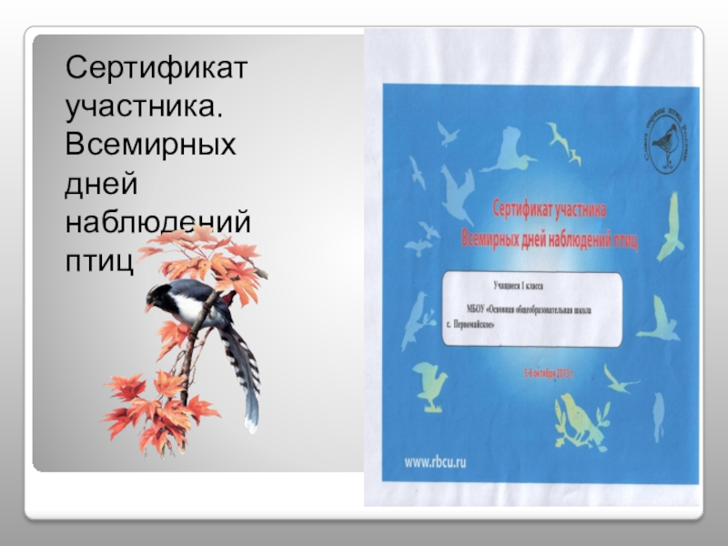 Слайд 5Сертификат участника. Всемирных дней наблюдений птиц