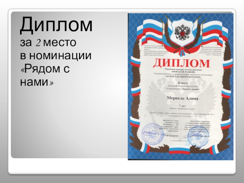 Слайд 8Диплом за 2 место в номинации «Рядом