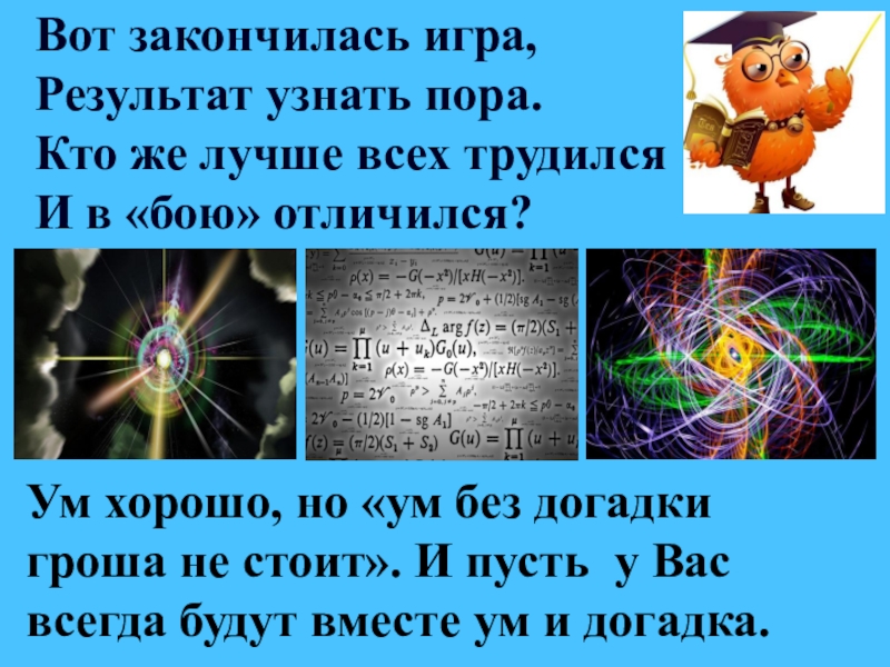 Ум хорошо, но «ум без догадки гроша не стоит». И пусть у Вас всегда будут вместе ум и догадка.